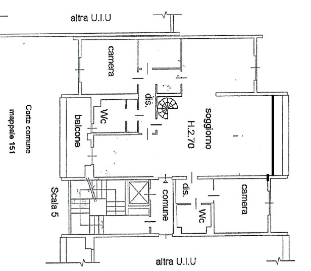 ATTUALMENTE TROVIAMO UN TRIPLO SOGGIORNO CON ZONA PRANZO E AVANZAMENTO LOGGIA SIA AL PIANO 2 CHE AL PIANO 3, CUCINA ABITABILE, CUCINA DI SERVIZIO ENTTAMBE CON ACCESSO AL BALCONE, DUE CAMERE CON BAGNO EN SUITE AL PIANO 2 OLTRE CAMERA E STUDIO CON BAGNO IN COMUNE E DUE CAMERE CON BAGNO EN SUITE AL PIANO 3 (PER UN TOTALE DI 6 CAMERE E 5 BAGNI)